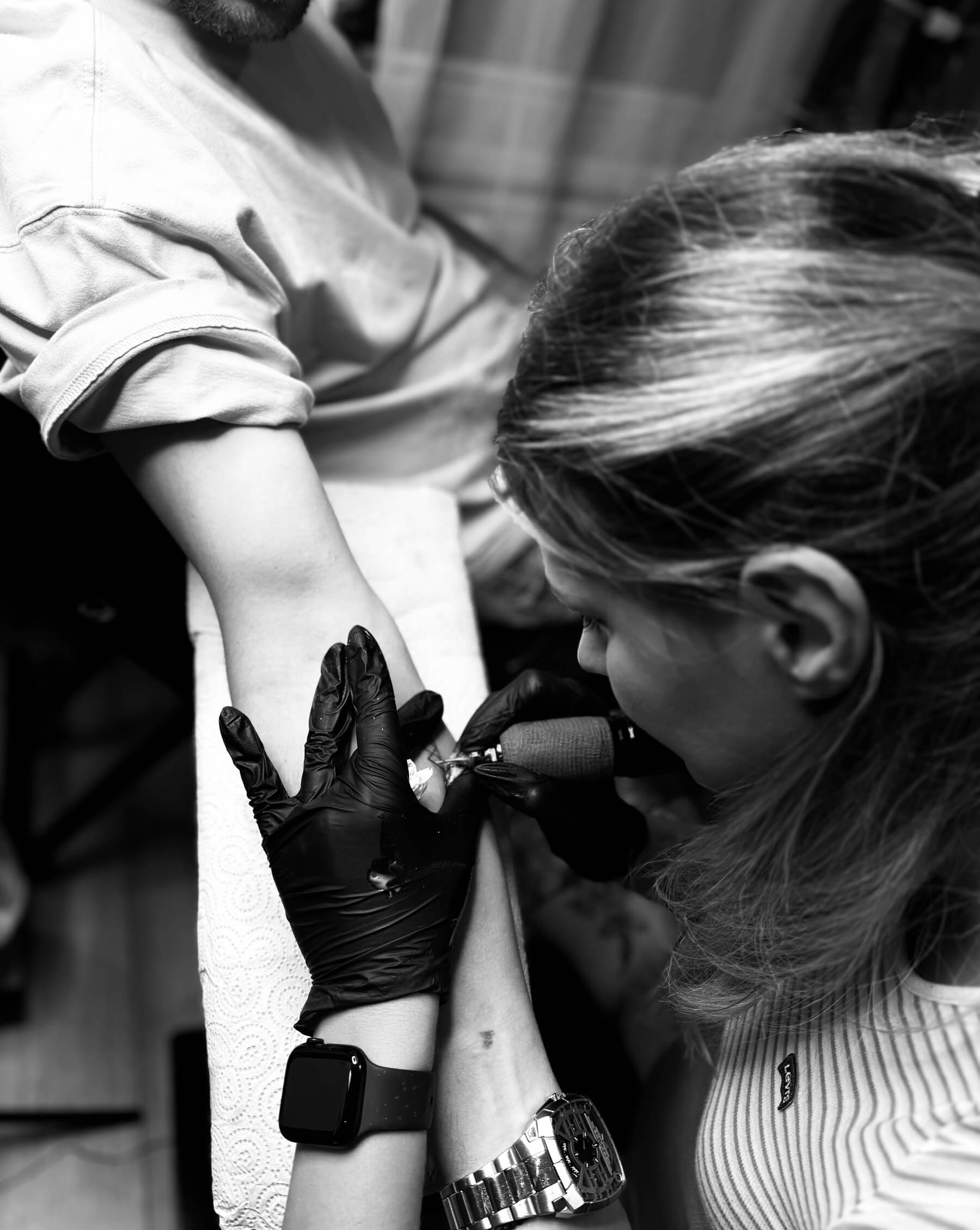 Our mission is to reflect creativity, individuality, and a passion for artistic beauty, transforming personal ideas and stories into unique tattoos. We are committed to providing expert guidance, top-quality artistry, and a professional and safe environment. Whether it’s a small fine line piece or a bold full sleeve, we ensure that each tattoo is crafted with care and perfection.